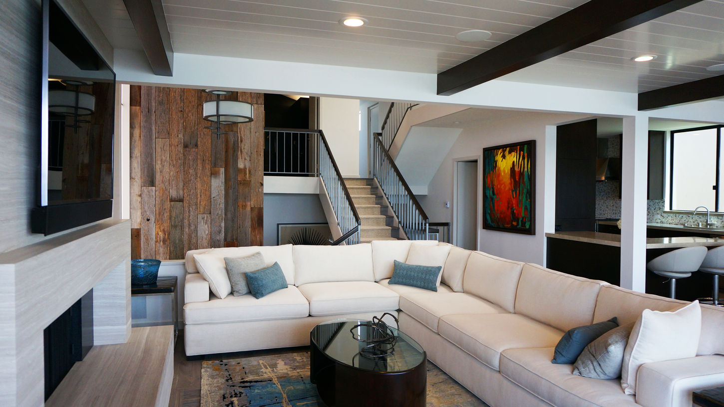 This project entails the comprehensive renovation of both the interior and exterior of a two-story Mid Century Modern residence situated in Naples Island, California. In addition to the renovation, a new en-suite guest quarters were constructed above the existing garage, augmenting the livable space of the home.